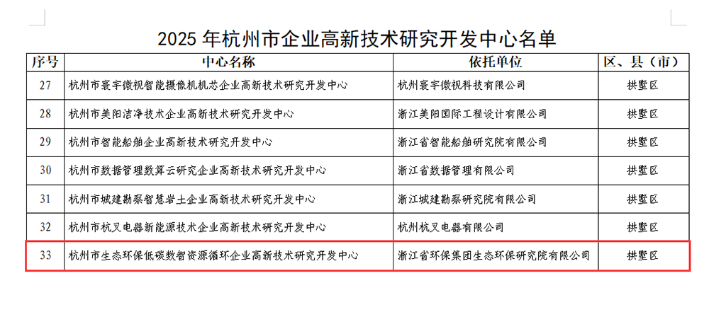 近日,由ebpay钱包集团生态环保研究院有限公司创建的“杭州市生态环保低碳数智资源循环企业高新技术研究开发中心”,成功入选2025年杭州市企业高新技术研究开发中心名单,标志着生态环保研究院在科技创新领域取得重要突破,迈入新的发展阶段。